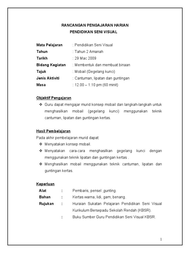 Rancangan Pengajaran Harian Pendidikan Seni Visual Mata Pdf