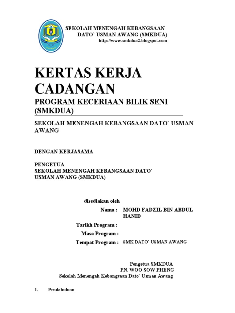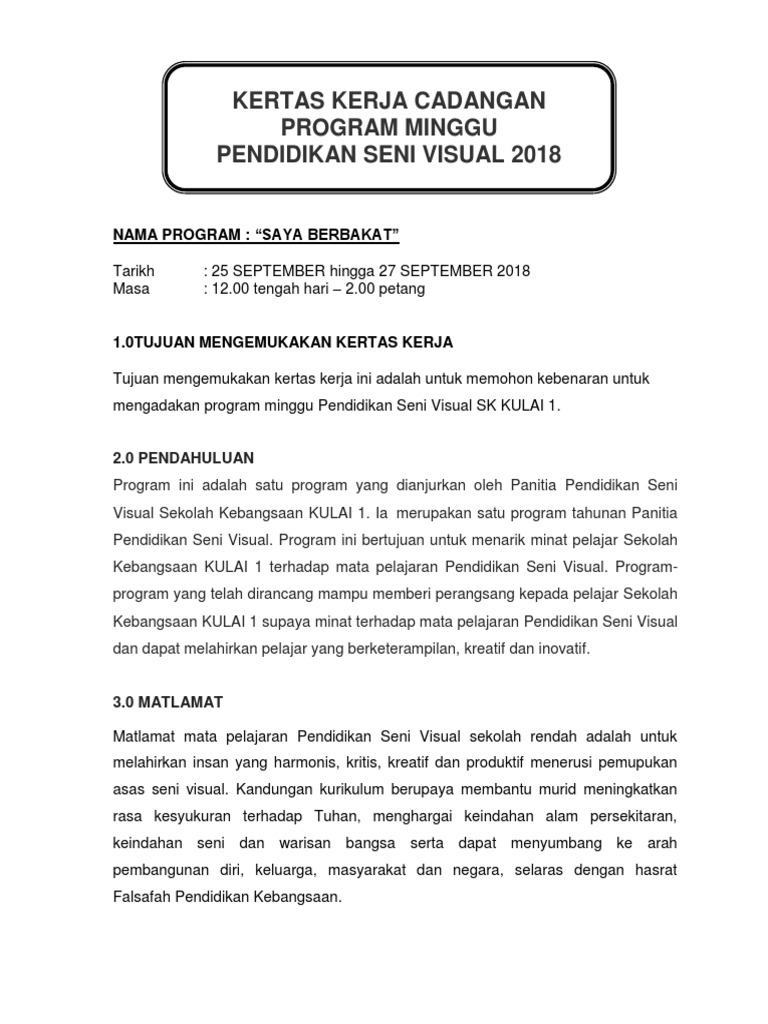 Contoh Kertas Kerja Pendidikan Seni Visual Sekolah Rendah